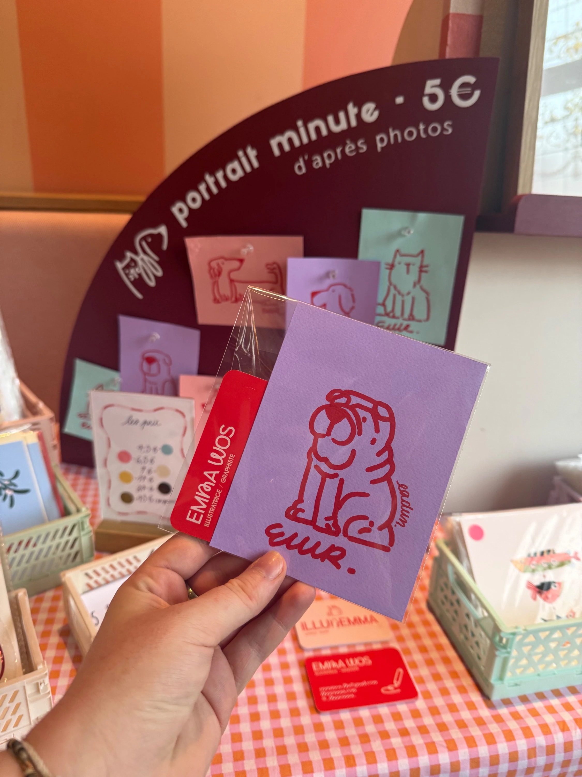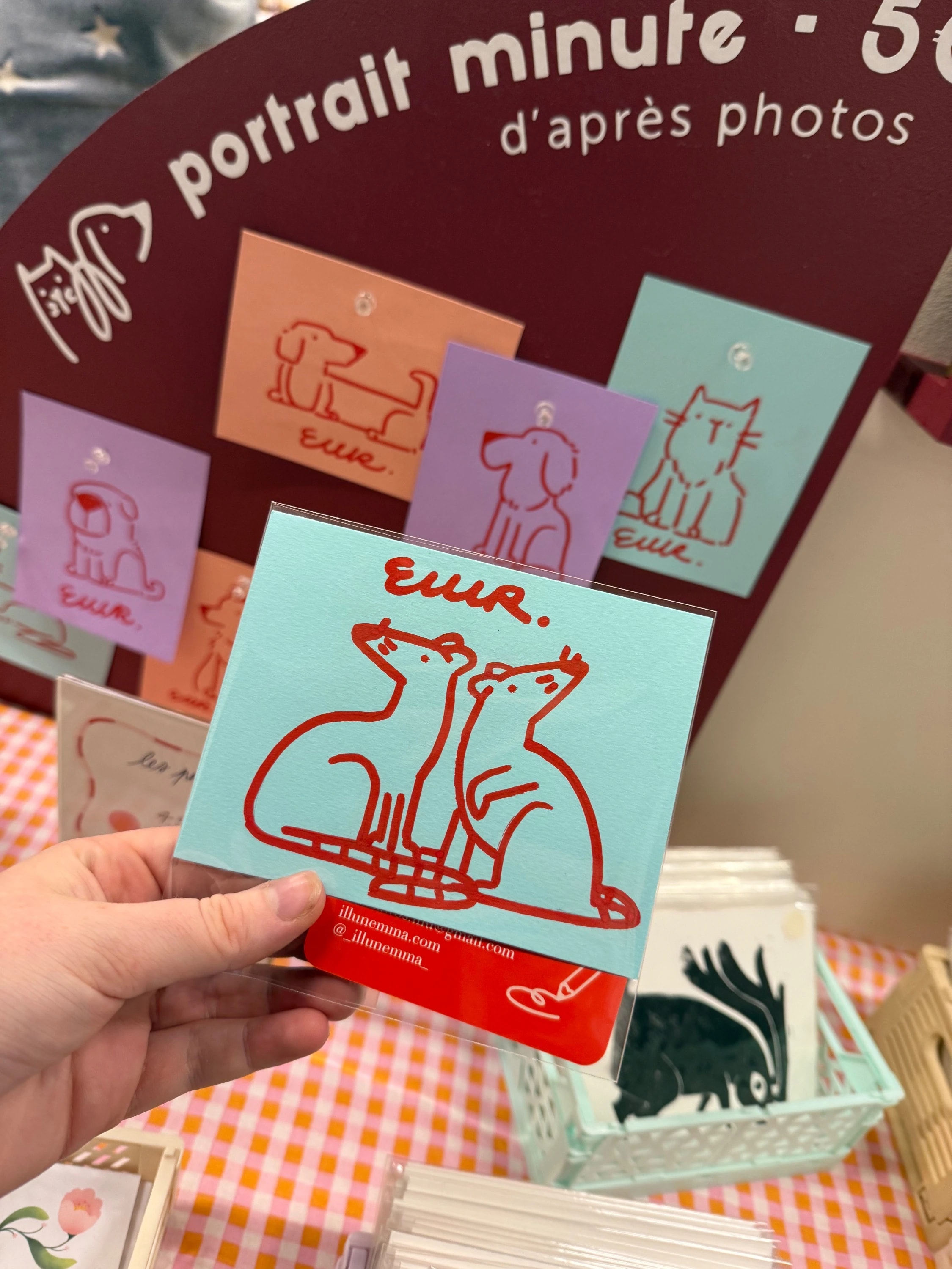 De petits portraits réalisés d’après photo, en direct sur les marchés de créateurs. Envie de me voir à l’œuvre ? Retrouvez les prochaines dates sur Instagram.